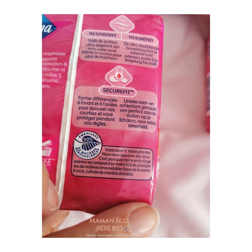 Coté compo : Je m’aperçois que les serviettes ne contiennent pas de cotons mais des substances absorbantes…